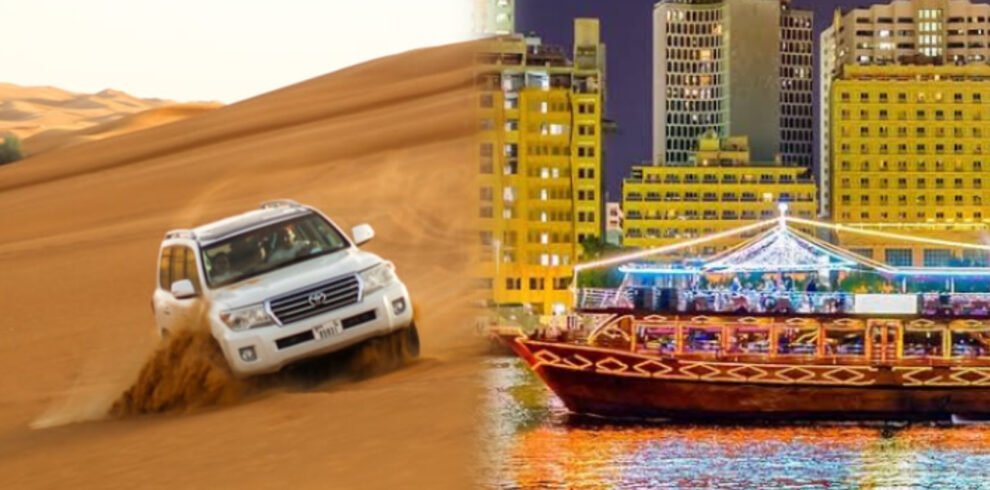 Experience the best of UAE with a combo tour covering Dubai City Tour, Desert Safari, Marina Dinner Cruise, and Abu Dhabi City Tour. This 2-day adventure includes iconic spots like Burj Khalifa (outside view), Dubai Creek, and Historical Bastakiya. Enjoy thrilling desert activities and a relaxing cruise evening. With pick-up and drop-off from your location, this combo offers a perfect blend of culture, adventure, and luxury.